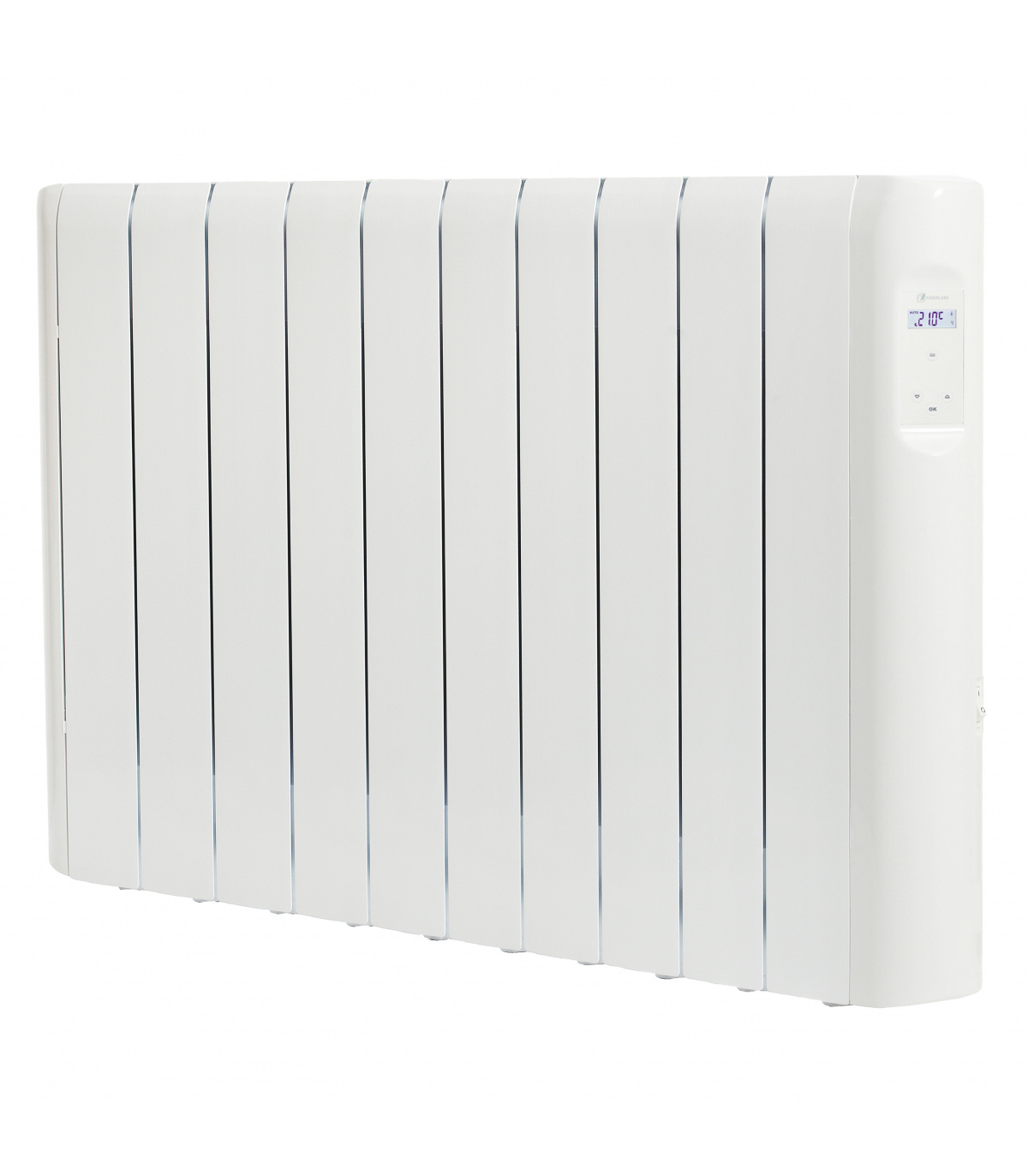 Emisor térmico fluido programable 1500 W con elementos curvos de aluminio de alta calidad, pantalla LCD, 3 modos, ventanas abiertas, programación 24/7.