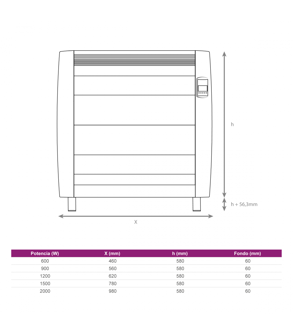 Fácula - Emisor Seco Slim Serie LH  600w | Programación diaria/semanal | Función ventanas abiertas | Baby care | Bases Fácula - Emisor Seco Slim Serie LH  600w | Programación diaria/semanal | Función ventanas abiertas | Baby care | Bases