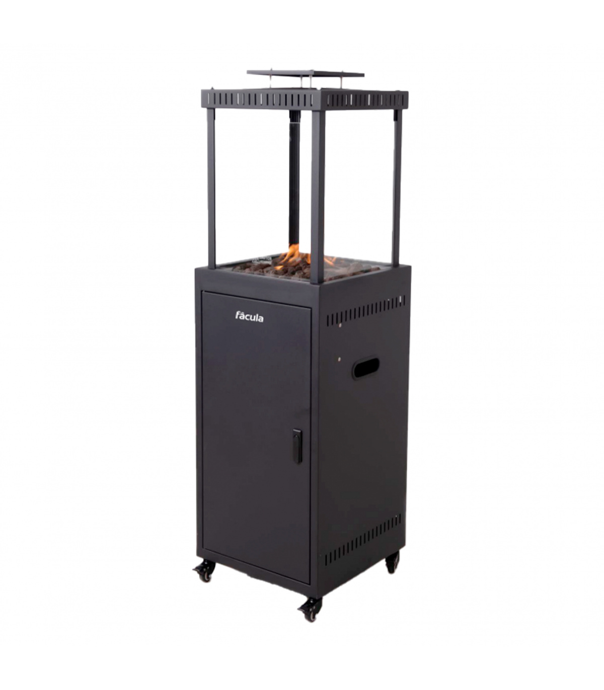 Fácula - Estufa de gas exterior negra Fire 13kW | Acero inox | Encendido piezoeléctrico | Ruedas | 25m² Fácula - Estufa de gas exterior negra Fire 13kW | Acero inox | Encendido piezoeléctrico | Ruedas | 25m²
