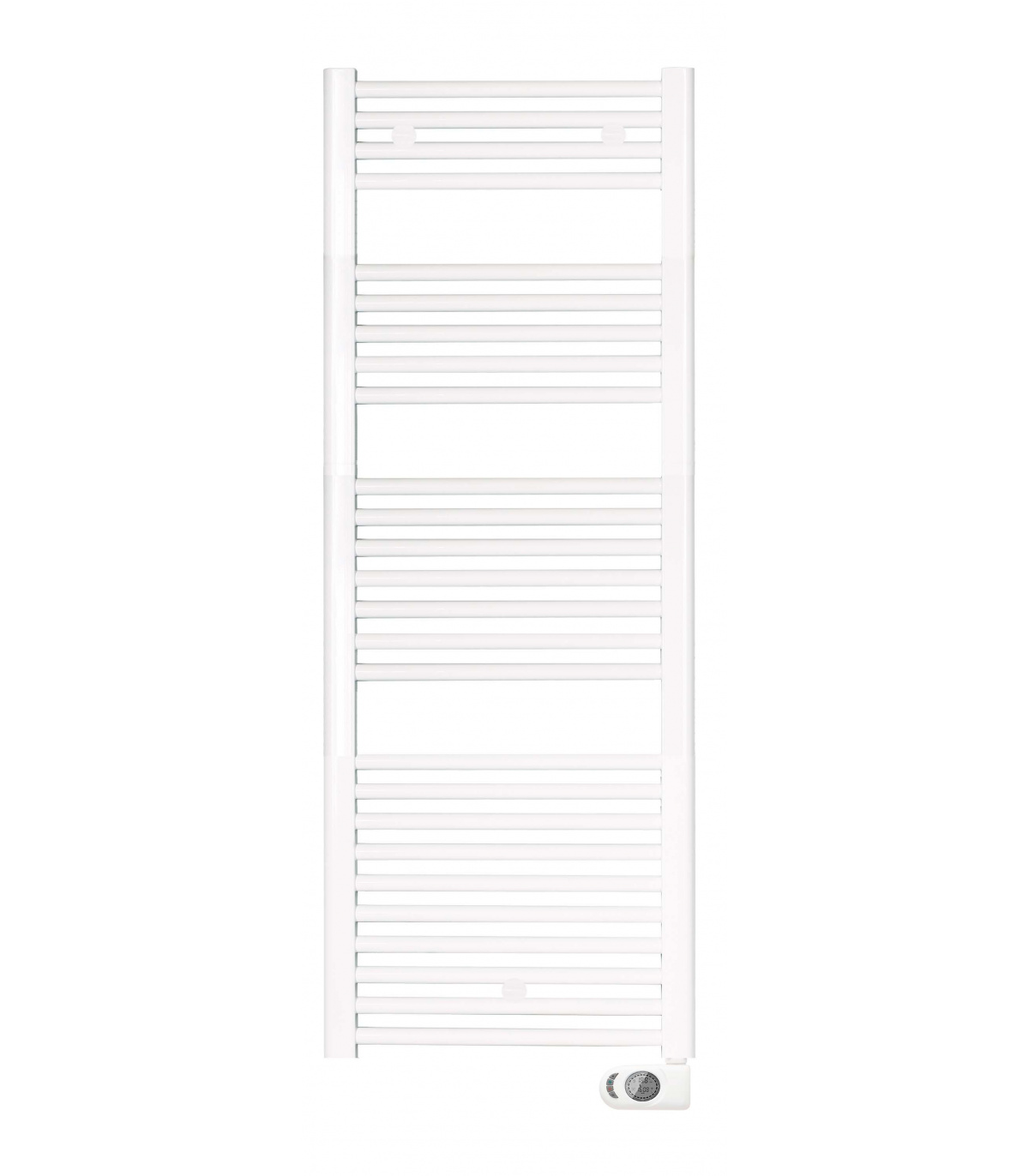 Radiador toallero blanco, 28 tubos, control digital LCD, modos confort/noche/antihielo, programable, IP44, detección ventana abierta, termostato, 230V.
