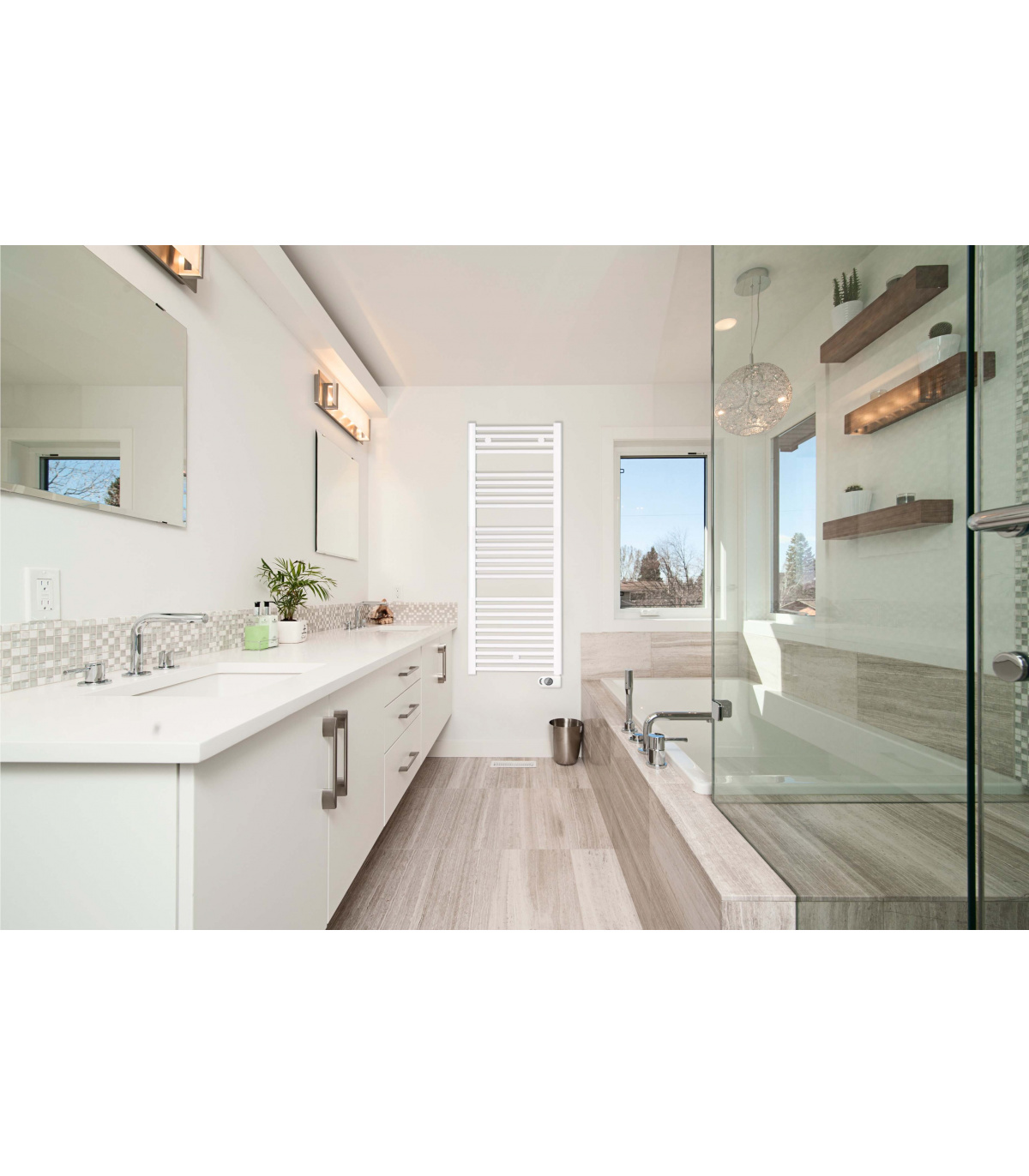 Radiador toallero eléctrico fluido blanco de bajo consumo Serie PE 850W: