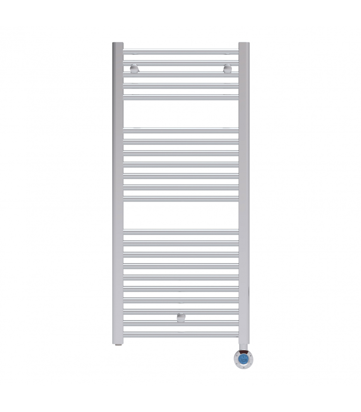 Radiador toallero de acero con fluido, control digital LCD, PID, modos confort/noche/antihielo, ventanas abiertas, programación diaria/semanal.Control al lado izquierdo.