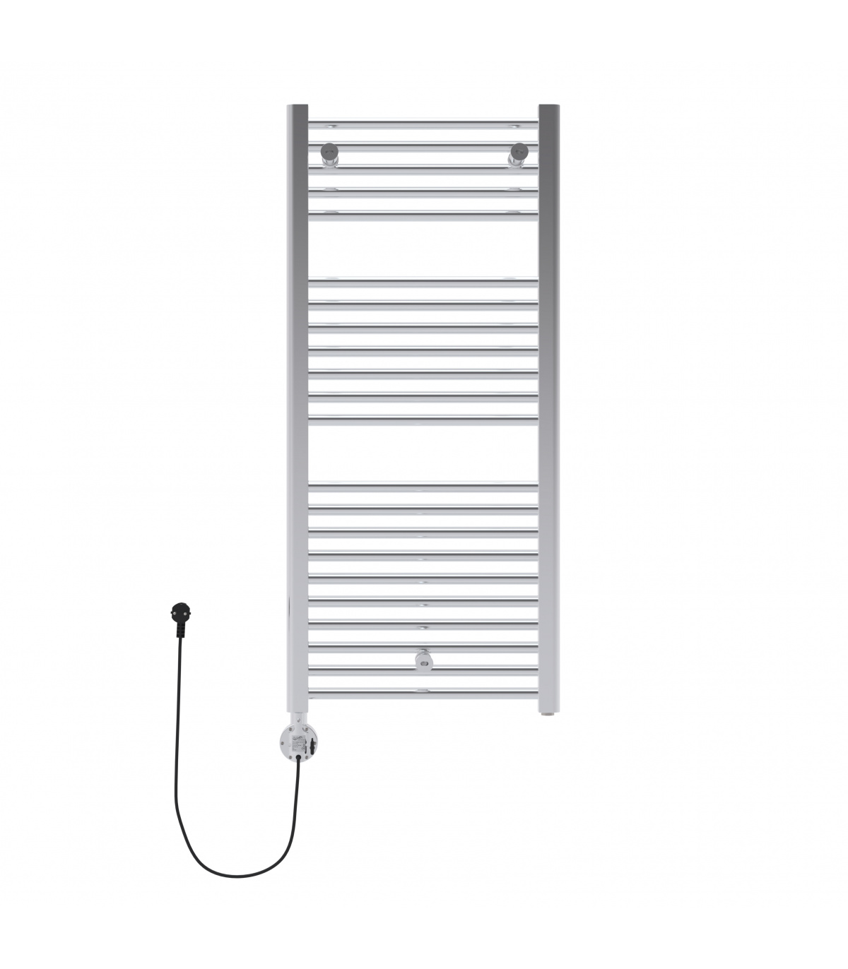 Toallero eléctrico blanco, fluido de alto rendimiento, control digital programable, modos inteligentes, seguridad IP44. Diseño recto. Fabricado en España.