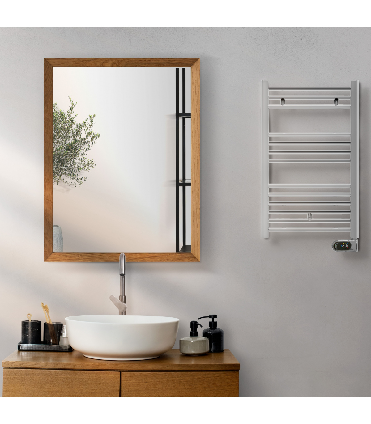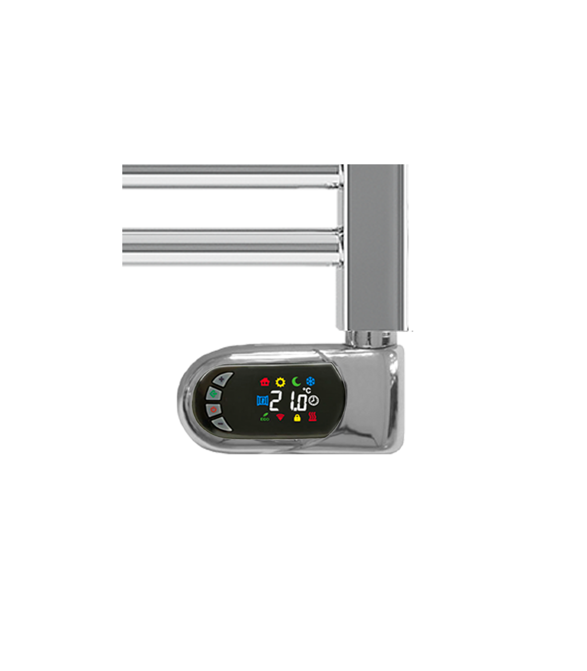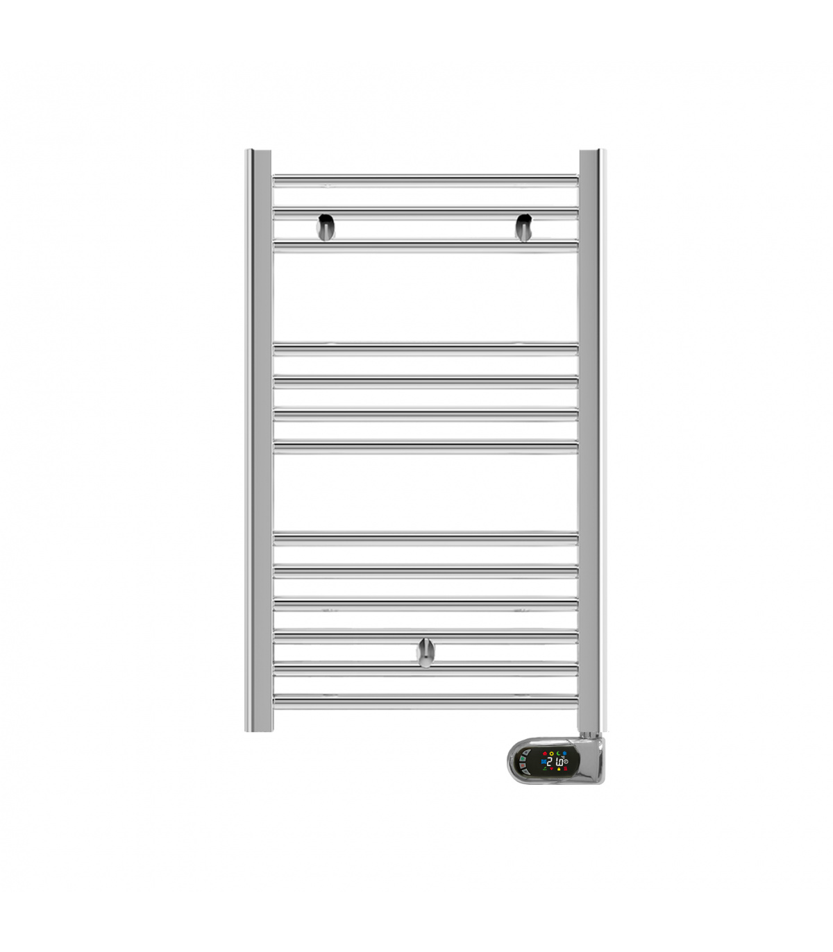 Toallero en acero con fluido caloportador de máximo rendimiento y seguridad. Control electrónico de fácil manejo con función on/off, boost 2h, temporizador 12h y 24h.