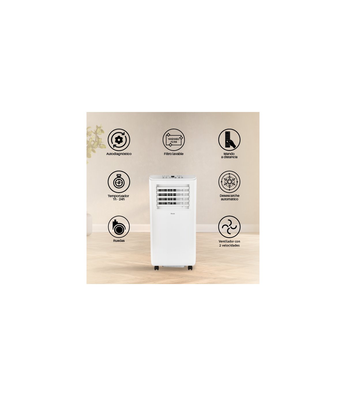 Fácula - Aire acondicionado portátil Polar 9000BTU | Ventilación+deshumidificación | Temporizador | Mando | Asa y Ruedas