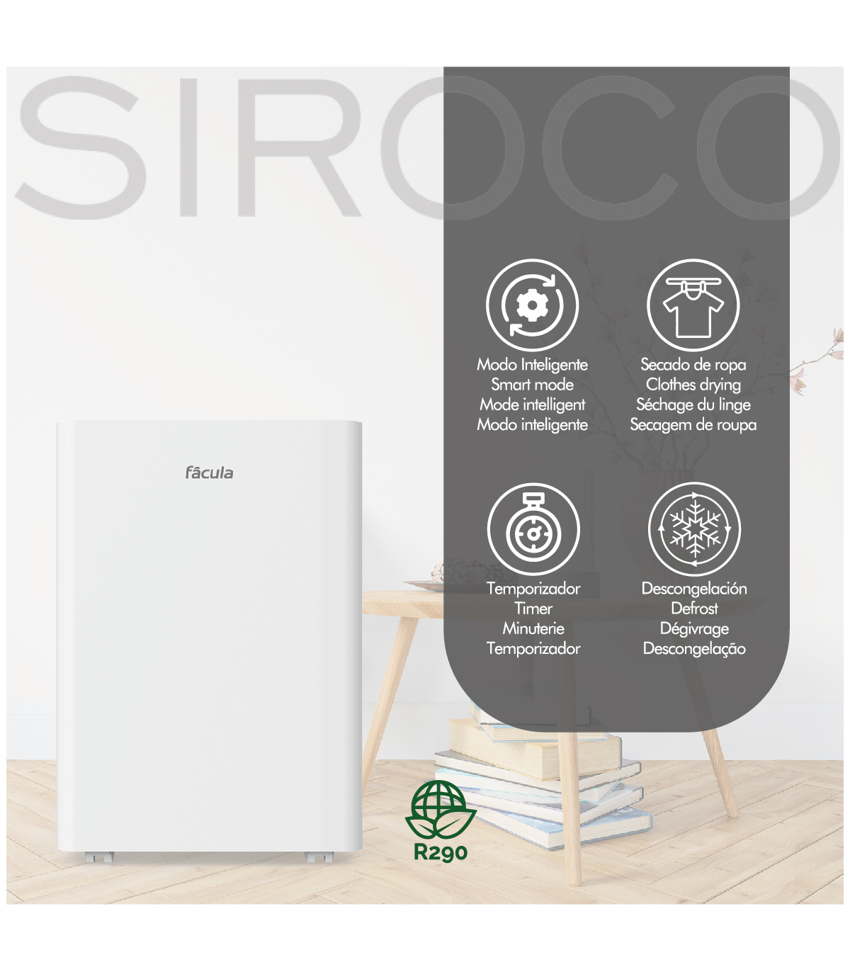 Fácula - Deshumidificador Siroco 20 l/día | Control Inteligente | Depósito extraíble 5,5l | Secado de Ropa | Temp 1-24h Fácula - Deshumidificador Siroco 20 l/día | Control Inteligente | Depósito extraíble 5,5l | Secado de Ropa | Temp 1-24h