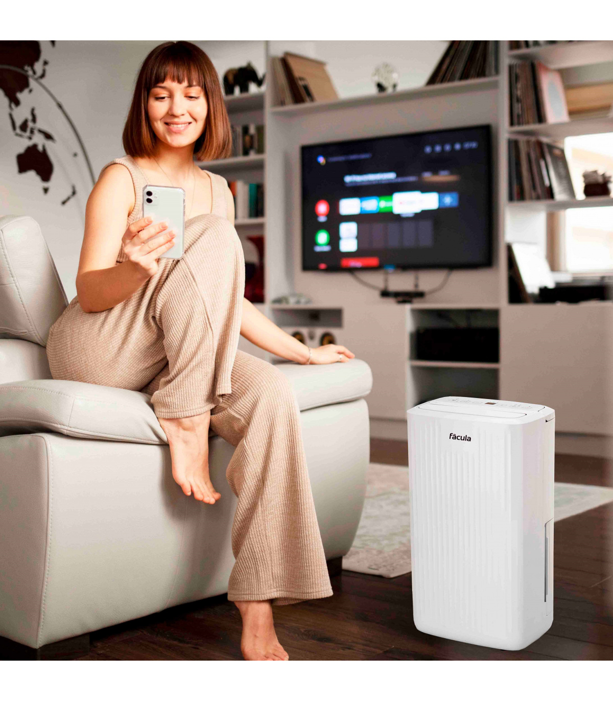 Deshumidificador portátil eficiente con control de humedad, modo inteligente, secado, timer 24h, filtro lavable y bajo ruido. Ideal contra moho y alergias.