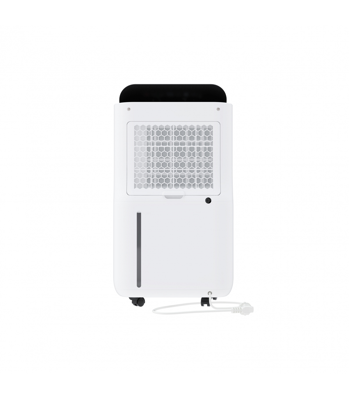 Deshumidificador con modos auto, inteligente y secado, drenaje continuo, luz de humedad, timer 24h, filtro lavable y bajo ruido. Ideal hasta 195 m³/h.