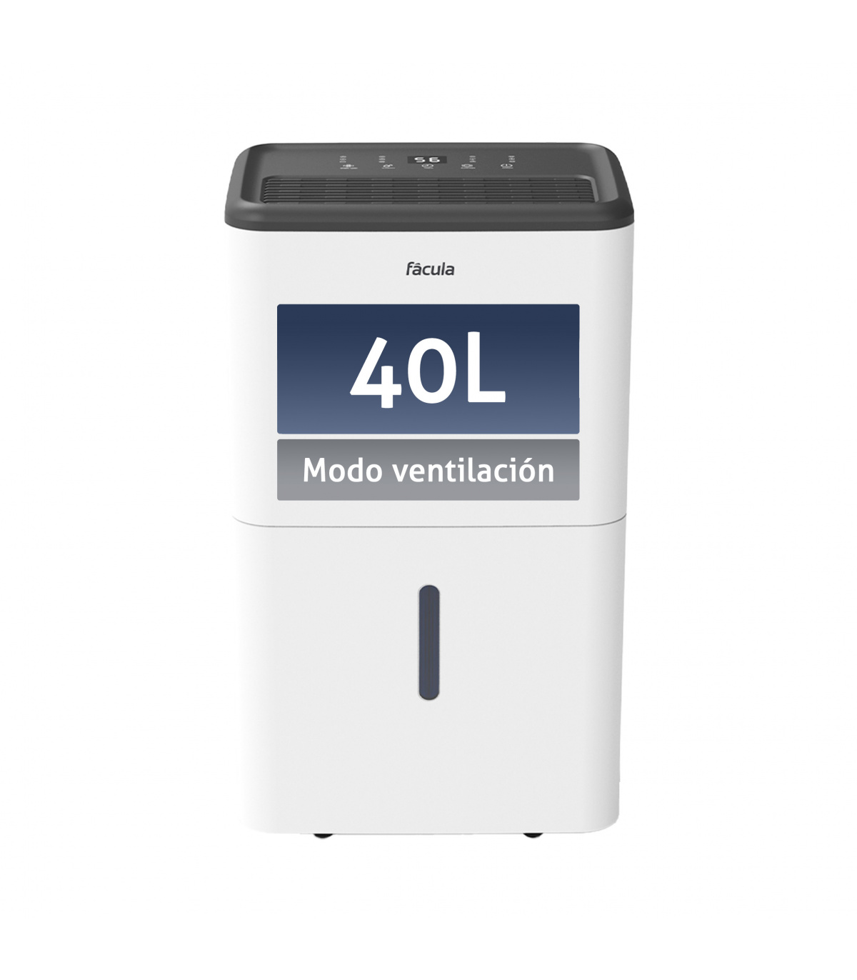 Deshumidificador portátil con modo auto, drenaje continuo, temporizador, filtro lavable, pantalla LED y gas R290. Silencioso y fácil de mover.