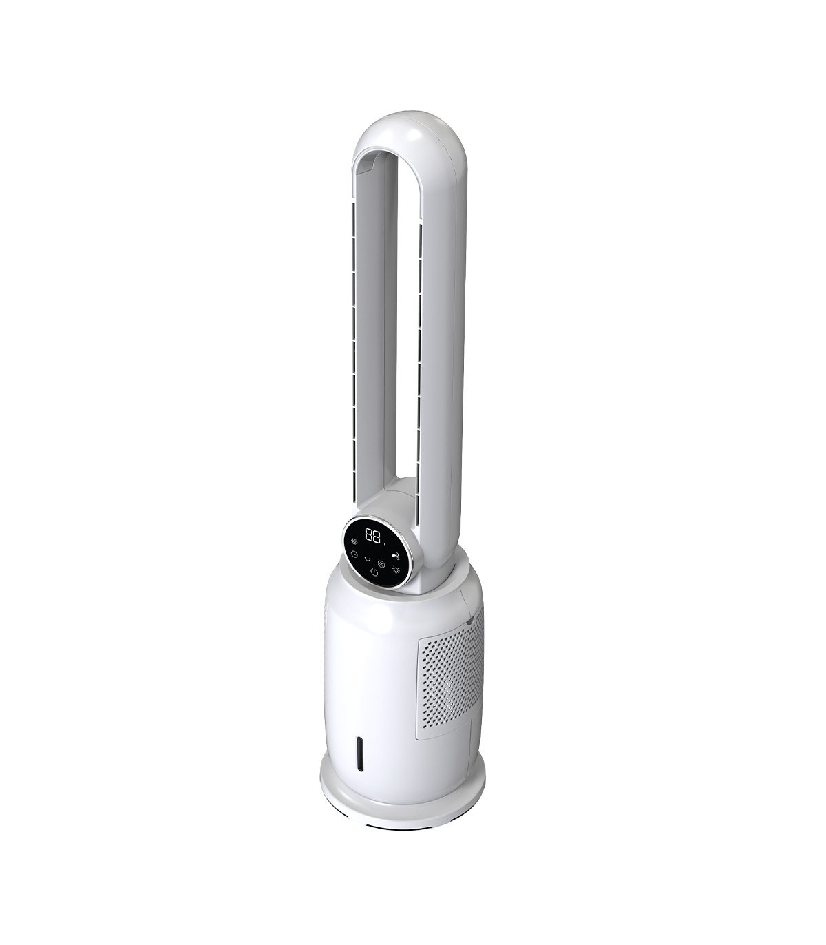 Climatizador evaporativo de 35w. Pantalla digital, oscilación 45º, temporizador 12 h, visualización de temperatura, nivel de agua visible, motor DC, mando a distancia, 60 dB máx.