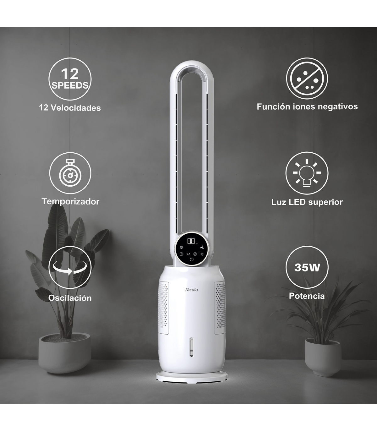 Fácula - Climatizador Evaporativo Blizzar-E 35w | Luz LED | 12 velocidades | Temporizador | Ionizador