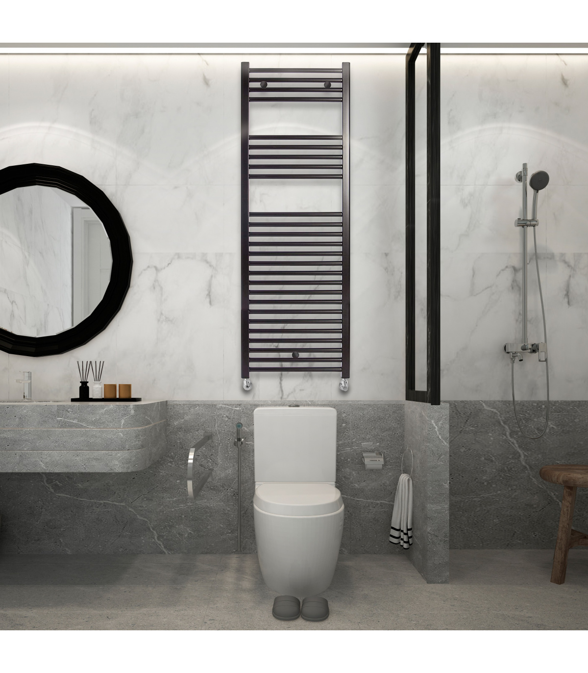 Fácula - Radiador Toallero DE AGUA Ocean Negro1420x500mm | (NO Eléctrico) | 3 soportes+purgador | Conexiones 3x1/2"