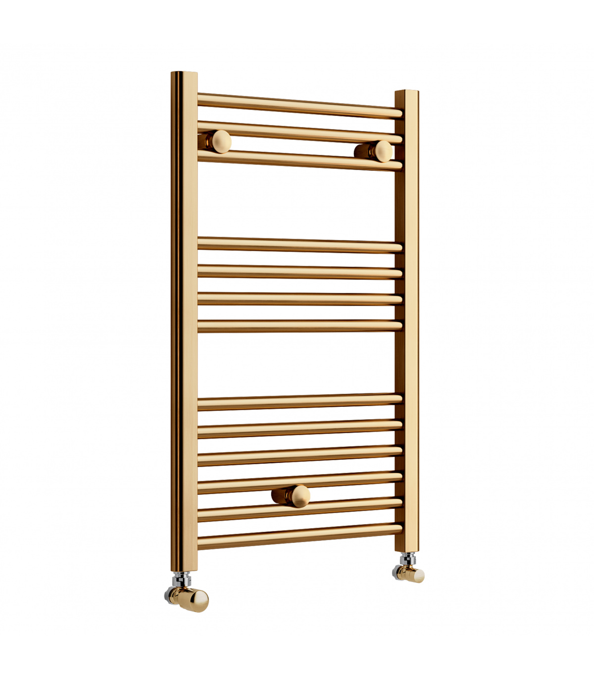 Radiador toallero de agua dorado con bastidor de acero. Válvulas no incluidas. Requiere instalación a la calefacción central.