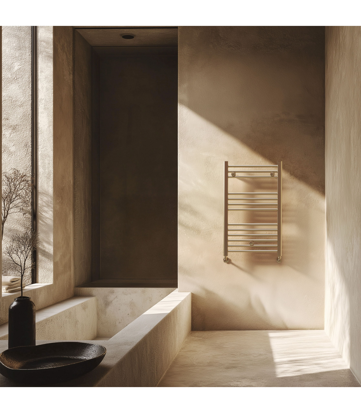 Radiador toallero de agua quartz con bastidor de acero. Válvulas no incluidas. Requiere instalación a la calefacción central.